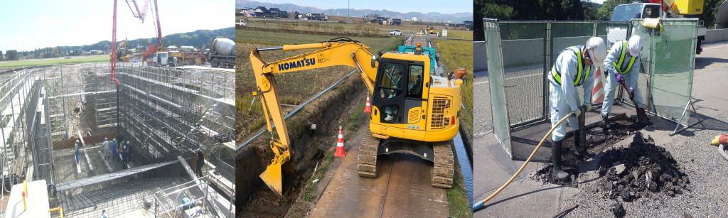 高速道路、国・県・市の道路・河川の建設工事や維持管理業務を中心に、